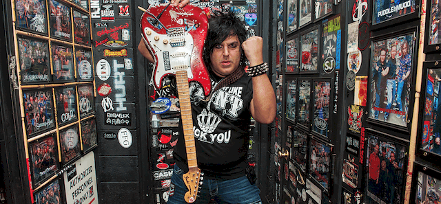 The Warmoth neck is flame maple with a standard thin profile, a compound radius fretboard, and the bridge is a vintage six-screw Wilkinson tremolo. “I prefer a six screw vintage bridge as I feel it’s more resonant and has more connection to the wood,” Henderson says. “I oil the slots of the nut on the neck to help keep the strings from getting caught and keep the tremolo running smooth. It stays in tune great. I like to go crazy with the divebombs, and it stays in tune just fine.” Henderson also uses vintage tuners and likes to change his own strings. He uses Dunlop 10-46 gauge and puts on a fresh pack every night: he says that the ritual of changing the strings and oiling the unfinished neck “help warm up the hands and get me ready for the show.” Now, lets get down to the body! The body of his Frankenstrat is a nitrocellulose candy apple red finish By MJT, purchased on ebay. It was lightly reliced at the time, but in just about a year the guitar has been used in over 200 shows in all kinds of venues, from clubs to arena shows. It is now what he likes to call a “Caveman” relic. You can actually see him drag the guitar across a gravel parking lot Colt Ford’s music video for “What I Call Home.”