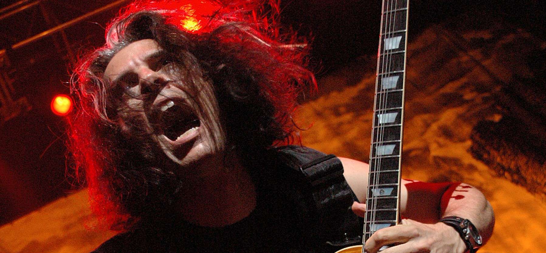 The Deluxe Edition of the album includes a bonus DVD where Alex Skolnick and Eric Peterson talk gear. Alex reveals what he uses to get his epic tone. The guitar is his signature Heritage H-150 loaded with Seymour Duncan SH-1 ’59 neck and SH-4 JB bridge pickups. He notes that his signature guitar is heavy, which some might not appreciate, but he says he’s “noticed that heavy guitars really cut through.” He uses a Marshall Mode Four head, which is “a little bit taboo” with guitar players since it has a solid-state power amp, but he’s used it for years with great results. He does have a signature Budda amp in the works that he’s really looking forward to. It will be built to his specs with the capability of solid-state and tube sounds, or as Alex puts it, “The best of both worlds.” From a pedal standpoint, Alex uses a Boss tuner, JAM pedals TubeDreamer, MXR Phase 90, and Boss Giga Delay.